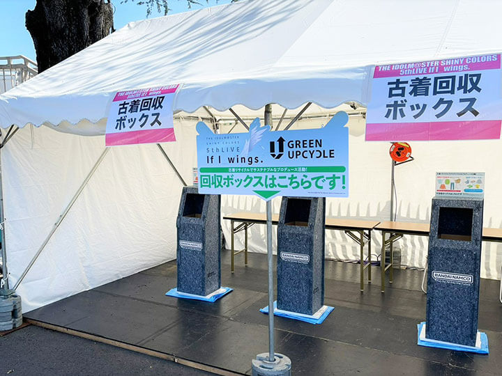 At the venue for THE IDOLM@STER SHINY COLORS 5thLIVE If I wings., which was held in March 2023, we implemented an initiative to collect used clothing from attendees. We called on fans to deposit used clothes into boxes that were set up at the venue to collect such clothing.